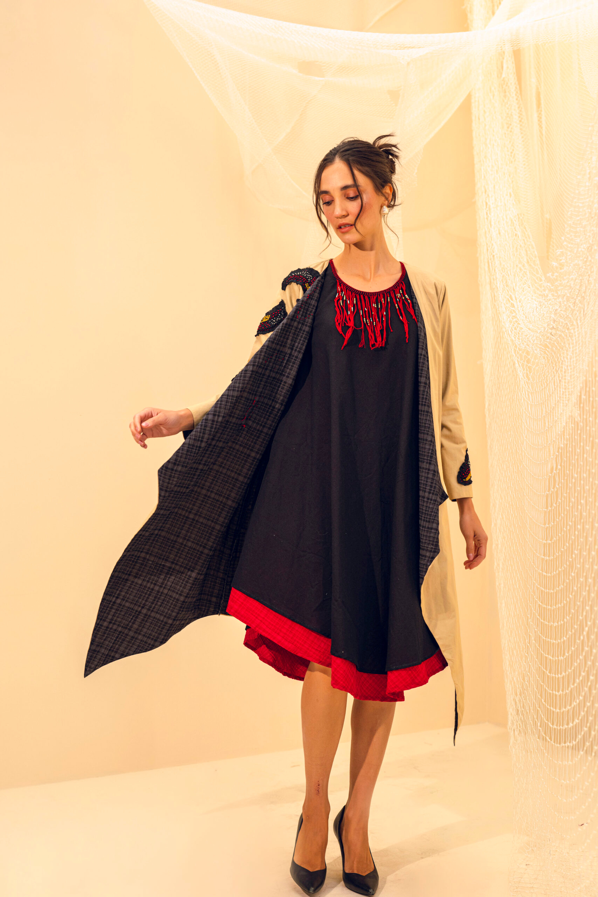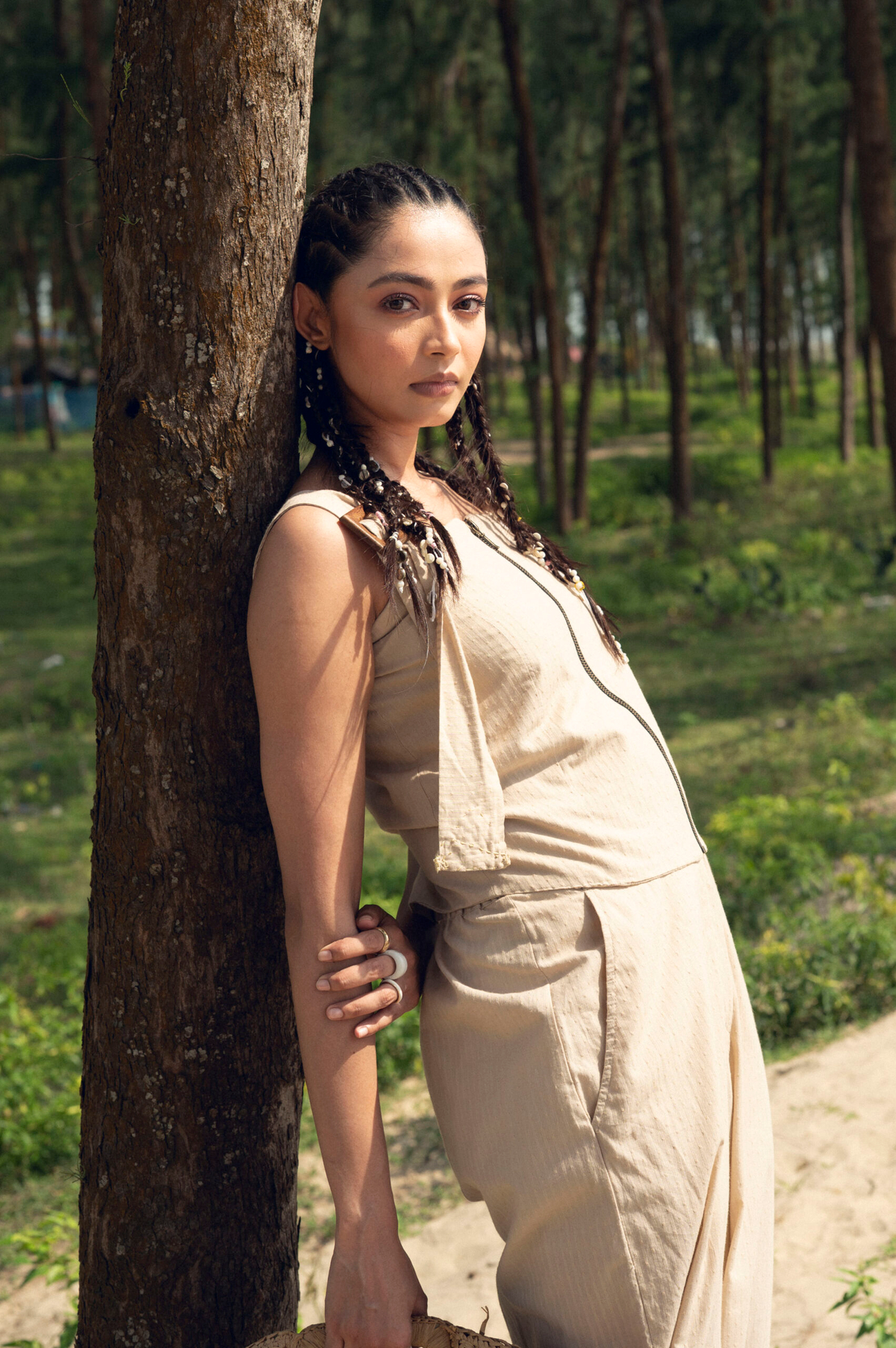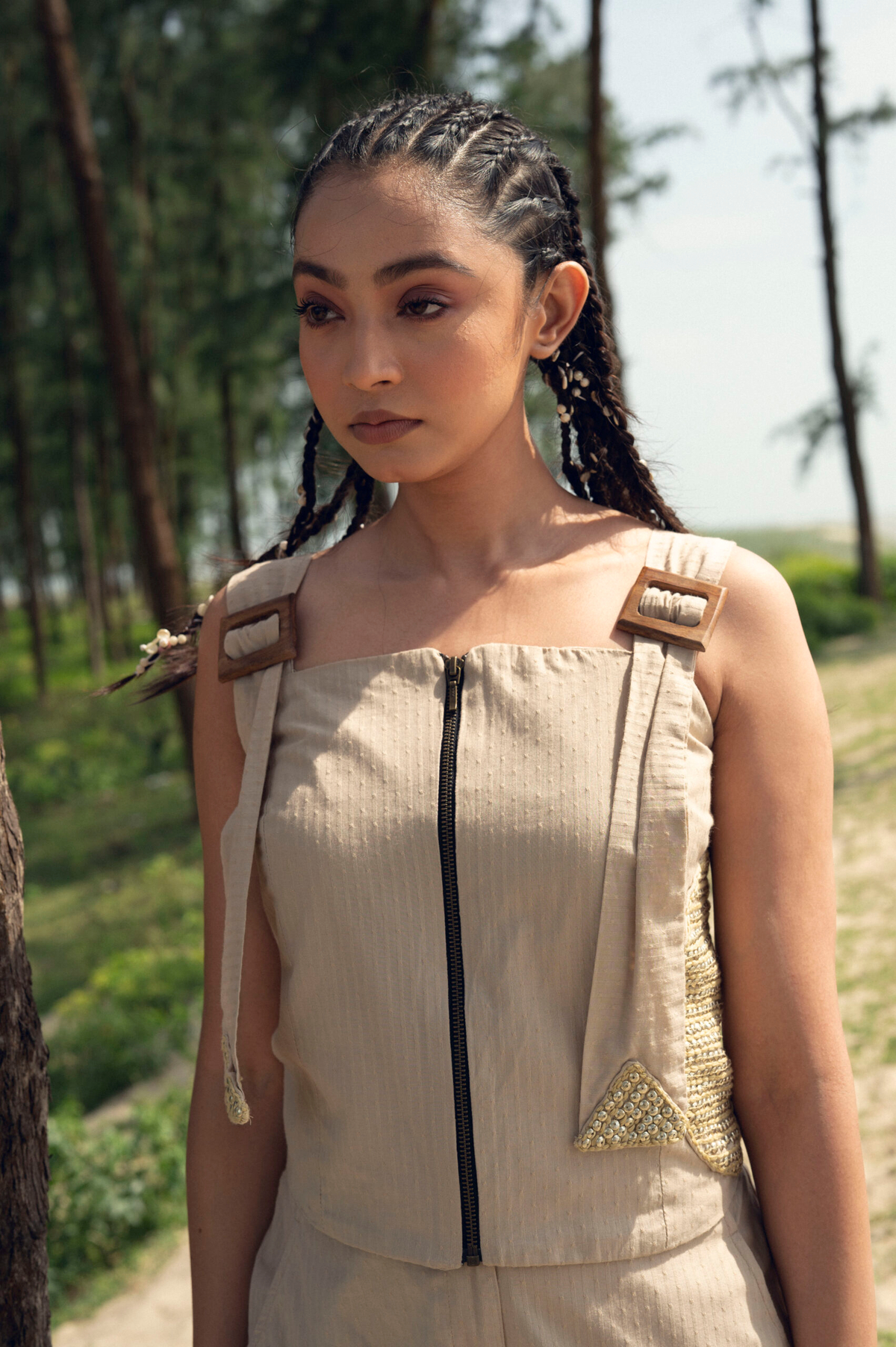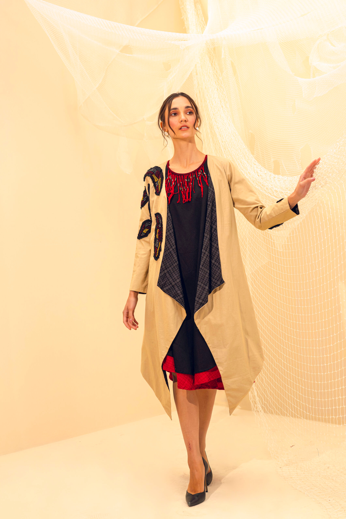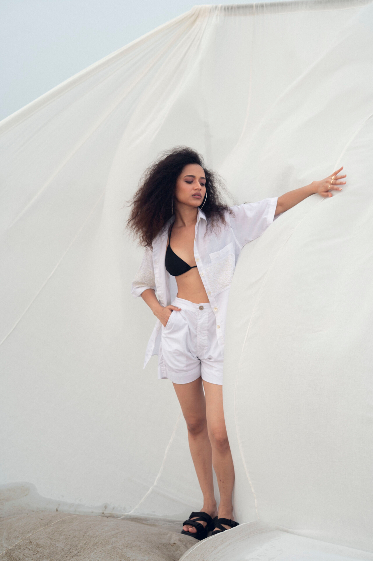This structured shirt features a relaxed, easy fit that sits comfortably on the body while maintaining a tailored silhouette. It includes short sleeves with clean edging and a classic collar for a polished finish. The front yoke is enhanced with delicate pintuck detailing, adding subtle texture and dimension. Intricate floral embroidery on one side brings a handcrafted charm, complemented by a single curved patch pocket outlined with fine threadwork. Button closure at the front completes the look with understated elegance.
