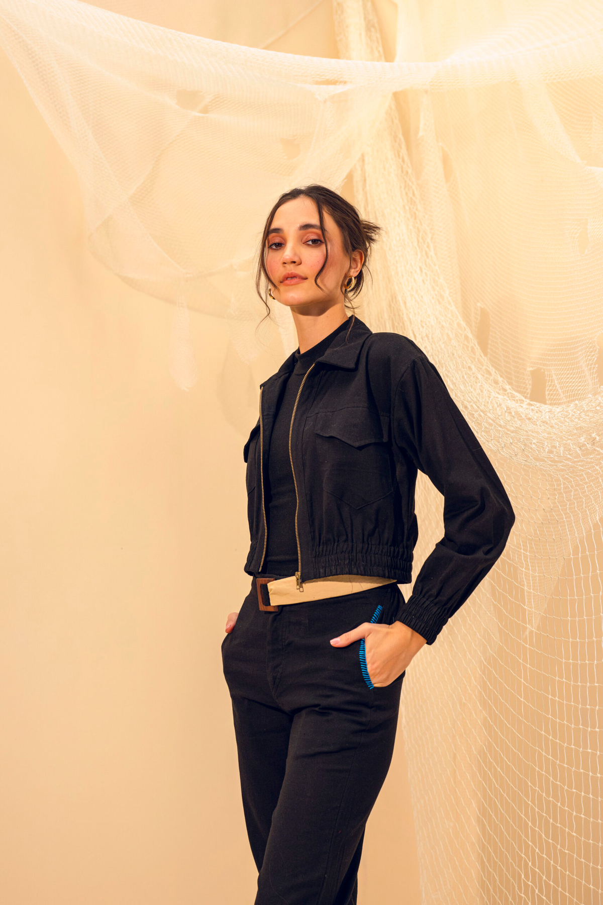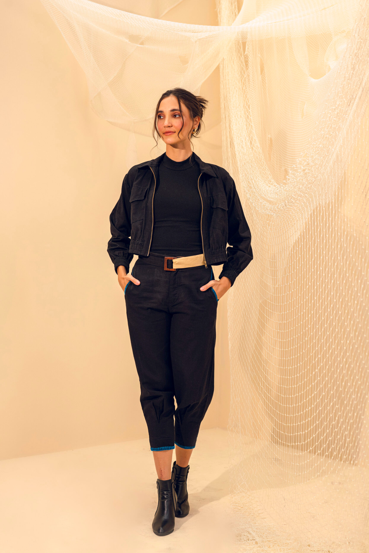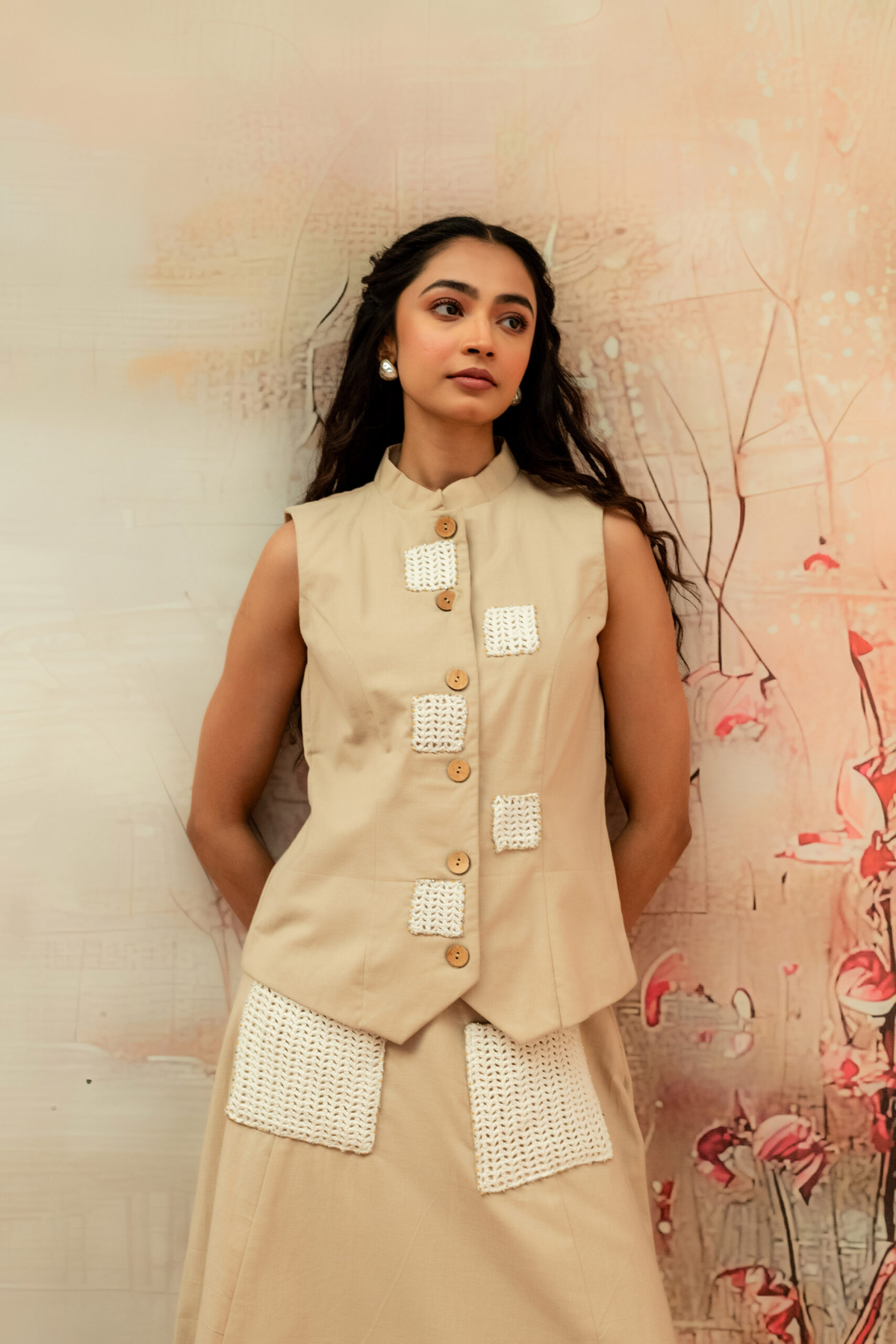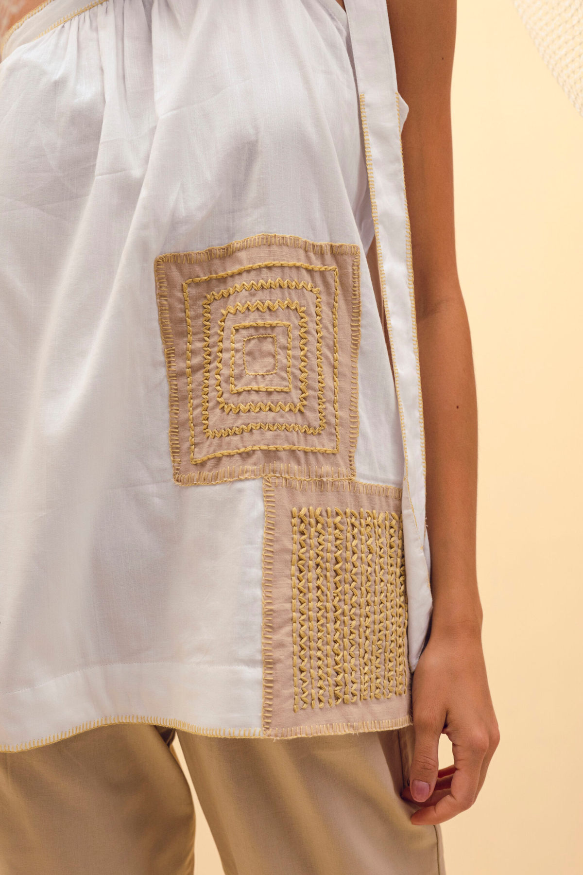A versatile trench-style overlay, crafted in a relaxed silhouette and designed for effortless layering. The piece features a notched collar highlighted with grey braided piping for a sharp, understated finish adding artisanal texture to its clean lines. This design transitions seamlessly from day to evening, offering both minimal elegance and handcrafted detail in every stitch.